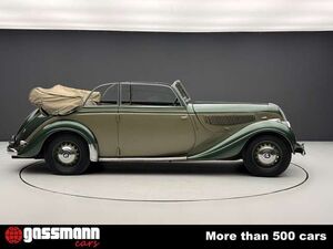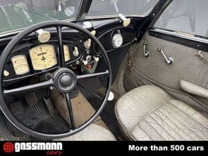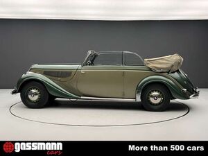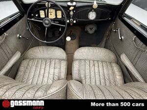 1941 BMW 335 Cabriolet Autenrieth \\Ein Spitzenmodell der Vorkriegszeit ? extrem selten ? seit 1963 in einer Hand \\ \\? Äußerst seltenes Spitzenmodell - Eines von nur ca. 410?420 gebauten Exemplaren \\? Seit 1963 im letzten Besitz, zuletzt Teil der Pierre Strinati Collection in der Schweiz \\? Erfordert eine technische Wiederinbetriebnahme (Recommissioning) \\ \\Zum Verkauf steht ein außergewöhnlich seltener BMW 335 Cabriolet aus dem Jahr 1941 mit Karosserie von Autenrieth ? eines der exklusivsten und luxuriösesten Modelle, die BMW vor dem Zweiten Weltkrieg gefertigt hat. Von diesem Spitzenmodell entstanden lediglich rund 410?420 Exemplare, bevor die Produktion kriegsbedingt eingestellt wurde. \\Der BMW 335 war das letzte BMW-Modell, das vor Kriegsbeginn 1939 in Serie ging, und markierte zugleich den Einstieg der Marke in das Luxussegment. Technisch basierte er auf dem Typ 326, dessen Karosserie um 23 cm verlängert wurde. Das höhere Gewicht erforderte leistungsstärkere Bremsen sowie breitere Reifen. Herzstück ist ein neu entwickelter 3,5-Liter-Reihensechszylinder mit 90 PS, der eine Höchstgeschwindigkeit von bis zu 145 km/h ermöglicht. In Verbindung mit dem luxuriösen Interieur entstand so ein komfortabler und zugleich leistungsfähiger Reisewagen, der sich mit den großen Modellen von Mercedes-Benz und Horch messen konnte. \\ \\Angeboten wird hier eines der letzten gefertigten Fahrzeuge ? ein äußerst seltenes zweisitziges Cabriolet in eleganter zweifarbiger Lackierung Grau/Grün mit grauem Interieur. Das Fahrzeug befindet sich seit dem 30. August 1963 im Besitz von Herrn Strinati die Schweizer Zollabgaben wurden bereits im Januar 1947 entrichtet. \\ \\Dieses Fahrzeug stammt zuletzt aus der renommierten Pierre Strinati Collection in der Schweiz, einer bedeutenden Sammlung historischer Automobile. \\ \\Zur frühen Historie ist leider nur wenig bekannt. Wie bei den meisten Fahrzeugen der Sammlung wird jedoch davon ausgegangen, dass dieses Exemplar nie restauriert wurde und sich weitgehend im Originalzustand befindet. Vor einer erneuten Inbetriebnahme ist eine technische Durchsicht bzw. Wiederinbetriebnahme (Recommissioning) erforderlich. \\Eine seltene Gelegenheit für Kenner und Sammler, ein äußerst rares BMW-Spitzenmodell der Vorkriegszeit mit beeindruckender Provenienz zu erwerben. \\ \\ \\* Preis ab Standort ohne EU-Verzollung. Innerhalb EU + 7% *