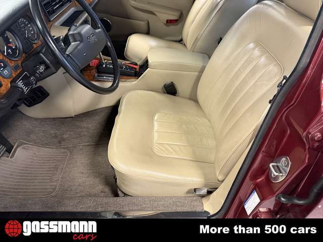 Bei Rückfragen Tel. +49 551/820244! \\ \\Farbe: Cranberry red \\Leder: doeskin \\ \\ \\Top Zustand \\Schweizer Import, EU Verzollt \\Service durchgeführt bei: 2.217km, 13.532km, 15.760km, 18.425km, 19.200km, 19.209km \\ \\Dem Daimler Double Six gelang das beinahe Unmögliche, er wurde schon vor Ende der Produktion zu einem Sammlerstück. Der V12 der 1983 vorgestellten Serie III wurde von Jaguar als das ?exklusivste und teuerste Fahrzeug unserer Modellpalette? angeboten, eine Reminiszenz an die Daimler der 30er Jahre. Die Höchstgeschwindigkeit von 230 km/h machte ihn zum damals schnellsten Viersitzer der Welt. \\ \\Nachdem 1986 der XJ40 vorgestellt worden war, verblieb der Double Six im Programm auf besonderen Kundenwunsch und mit einem handgefertigten Interieur von Vanden Plas. Zur Produktionseinstellung 1992 designierte Jaguar insgesamt 1500 Fahrzeuge als ultimative ?Last of the Line? mit ABS Bremsen und besserem Korrosionsschutz. Zu den letzten Kunden gehörte auch Königin Elisabeth II. \\ \\Dieses Auto verließ unter anderem die Browns Lane in Cranberry Red Mica mit klassischer Doeskin-Lederausstattung und wurde 2017 vom Vorbesitzer aus Japan in die Schweiz exportiert. \\ \\ \\ \\ \\ \\The Daimler Double Six achieved the rare feat of becoming a collectors? car before production ended. Launched in 1983, the Series III V12 was designated by Jaguar as ?the most exclusive and expensive car? in its range, evoking the rare 1930s Daimlers. The top speed of 230 km/h made it the fastest four-seater in the world. \\ \\After XJ40 launched in 1986, the Double Six remained as a special-order car finished by hand with a Vanden Plas-designed interior. When production ended in 1992, Jaguar designated the final 1,500 as the ultimate ?last of the line? with ABS brakes and better weather-proofing. Among the final customers was Queen Elizabeth II. \\ \\This example was among them leaving Browns Lane in Cranberry Red Mica with classic Doeskin leather interior and was exported to Switzerland from Japan by the previous owner in 2017.