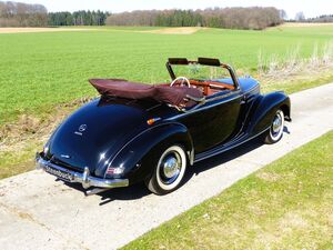 Unser Mercedes-Benz 220 Cabriolet A wurde am 22.09.1951 in Karlsruhe ausgeliefert. Die Farbkombination war Lack schwarz, Leder rot. Bei der sorgfältigen Restauration wurde auch sehr auf die Originalität geachtet. 1960 erhielt der Oldtimer einen zweiter Kfz-Brief. Ab diesem Zeitpunkt war das Cabriolet 19 Jahre in einer Hand und wurde 1979 abgemeldet. Nach der Restauration in 2015 erfolgte eine erneute Zulassung. Somit ist die Historie fast vollständig belegt. Dieses Mercedes-Benz Cabriolet stellt den puren Zeitgeist dar.