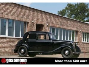 Chassis number 136.060.0211952 \\Engine number 135.925.5508335 \\Restored for about 40-50.000,00 EUR \\ \\ \\After World War II Mercedes-Benzs production line was limited to the pre-war 170 V as it was the only model for which the tooling survived. Those post-war cars were equipped with a 1750cc engine which could either be a petrol engine, identified as the 170 VA, or a diesel engine identified as the 170 DA. They met a great success and 83,000 examples were built. \\ \\The car on offer was registered for the first time with the number HD-RR141 in Germany on 31 December 1952. Well presented in its black paint it is a nicely restored example. The chrome is in good general condition with only some pitting visible on the radiator shell and door handles. The interior is nicely re-trimmed in brown leather with matching brown carpets. The dashboard is appealing and refined. From 1950 the 170 had external boot access and the spare wheel has a metal cover. This very neat example of Mercedes Benzs post-war cars is an opportunity which wont be missed by the enthusiasts. \\ \\Nach dem Zweiten Weltkrieg war die Produktionslinie von Mercedes-Benz auf den 170 V aus der Vorkriegszeit beschränkt, da dies das einzige Modell war, für das die Werkzeuge überlebten. Diese Nachkriegsautos waren mit einem 1750-cm3-Motor ausgestattet, der entweder ein Benzinmotor sein konnte, der als 170 VA bezeichnet wurde, oder ein Dieselmotor, der als 170 DA bezeichnet wurde. Sie hatten einen großen Erfolg und 83.000 Exemplare wurden gebaut. \\ \\Das angebotene Auto wurde am 31. Dezember 1952 zum ersten Mal in Deutschland unter der Nummer HD-RR141 zugelassen. Gut präsentiert in seiner schwarzen Lackierung ist es ein schön restauriertes Exemplar. Das Chrom ist in einem guten Allgemeinzustand mit nur etwas sichtbarem Lochfraß an der Kühlerverkleidung und den Türgriffen. Der Innenraum ist hübsch in braunem Leder mit passenden braunen Teppichen neu getrimmt. Das Armaturenbrett ist ansprechend und raffiniert. Ab 1950 hatte der 170 einen externen Kofferraumzugang und das Reserverad hat eine Metallabdeckung. Dieses sehr gepflegte Beispiel der Nachkriegsautos von Mercedes Benz ist eine Gelegenheit, die sich Liebhaber nicht entgehen lassen sollten. \\ \\Wurde für ca. 40.000,00 EUR nochmals restauriert \\Zustand: 1- (besser wie Auslieferung)
