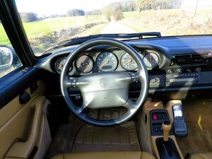 Unser Porsche 911 (Typ 993) Targa ist mit dem Automatik-Getriebe Tiptronic ausgestattet. Damals wollte man Schaltvorgänge wie bei der Formel 1 auf der Straße anbieten. Dieser Oldtimer ist in einem Topzustand und sofort einsatzbereit. Er ist in Deutschland ausgeliefert und seit 2008 beim zweitem Besitzer zugelassen. Ab April 2026 ist ein H-Kennzeichen möglich. Der Targa wirkt in der Kombination dunkelgrün metallic/Leder beige wirklich sehr edel.