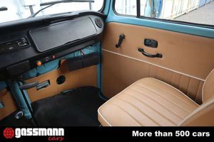 Bei Rückfragen Tel. +49 551/820224! \\ \\Farbe: Blau \\Leder: Braun \\ \\Chassis no. 2382137023 \\Engine no. AS653399 \\ \\- Sold new in Belgium \\- Extensive recent work \\- ?High Roof? version popular for camping \\- French title \\ \\As the plate from the importer d?Ieteren confirms, this Combi T23/D was sold new in Belgium. It is the version with side windows and has the raised roof, making it very convenient to fit out as a camper. Its current owner found it in Lebanon and then carried out a major restoration in 2022: this included completely repainting the body an elegant sky blue with a white roof. The upholstery was redone at the same time, and the entire rear compartment was fitted out as a camper, with a bench seat which could be converted into a double bed, a sink with a tap, and a gas hob ... All the fittings are made of wood and give the living area a very warm appearance. In 2023, the mechanical part has been overhauled as can be seen from a bill of ? 4 800 in the history file. The brakes were also overhauled. Although a few minor cosmetic details could still be improved, this Combi, sold new in Europe, would make a smart choice with its raised roof and generous glass area to set out on the road and enjoy to the full the freedom and adventure of a travelling life. Its registration papers allow four people to be carried, and rear seat belts have been fitted, enabling you to go off exploring with your family or friends.